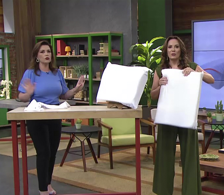A base do travesseiro é feita de espuma de memória em poliuretano, um material que nunca deforma e sempre volta ao seu estado original. Já a parte externa é 100% algodão hipoalergênico (não causa alergia).